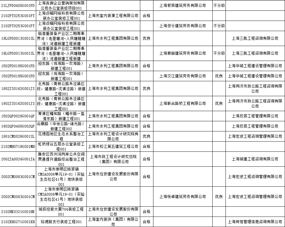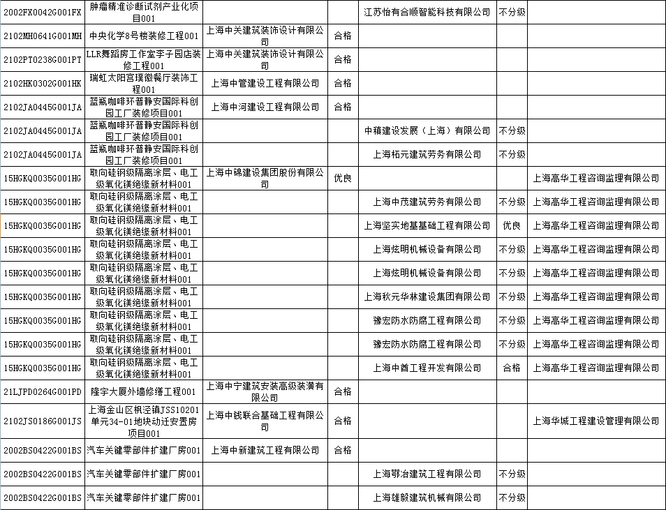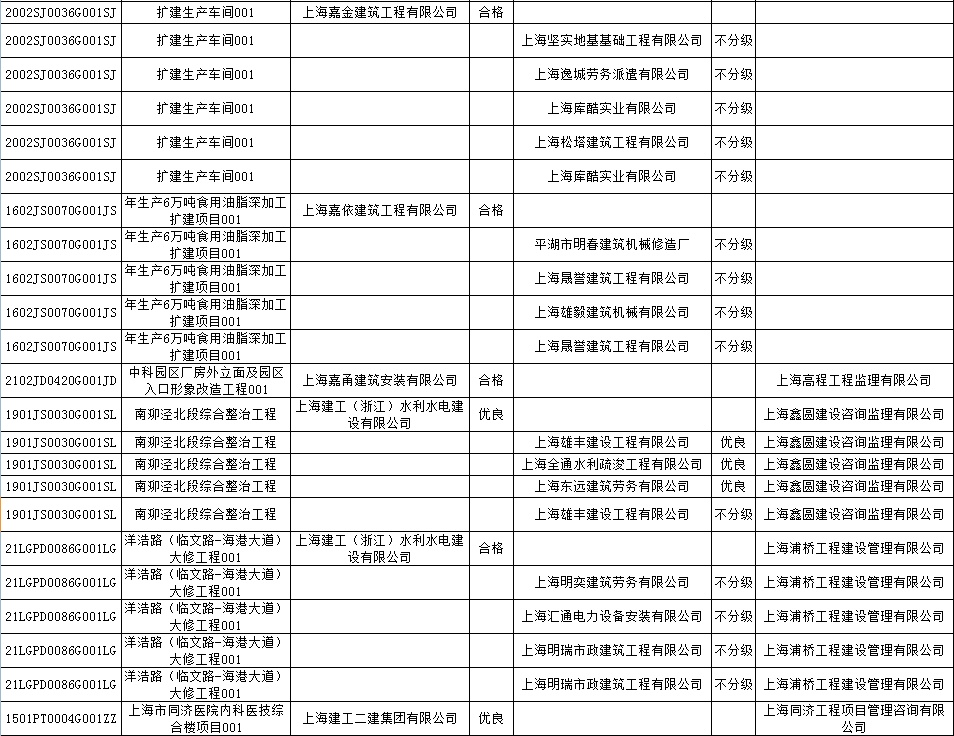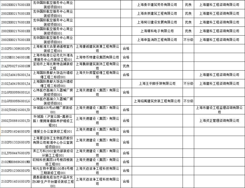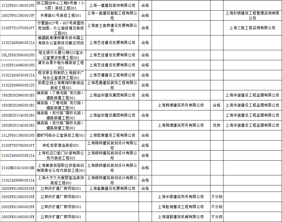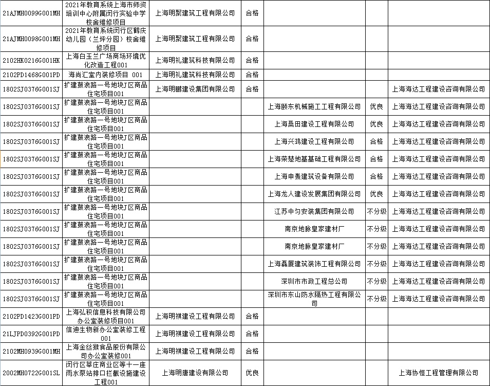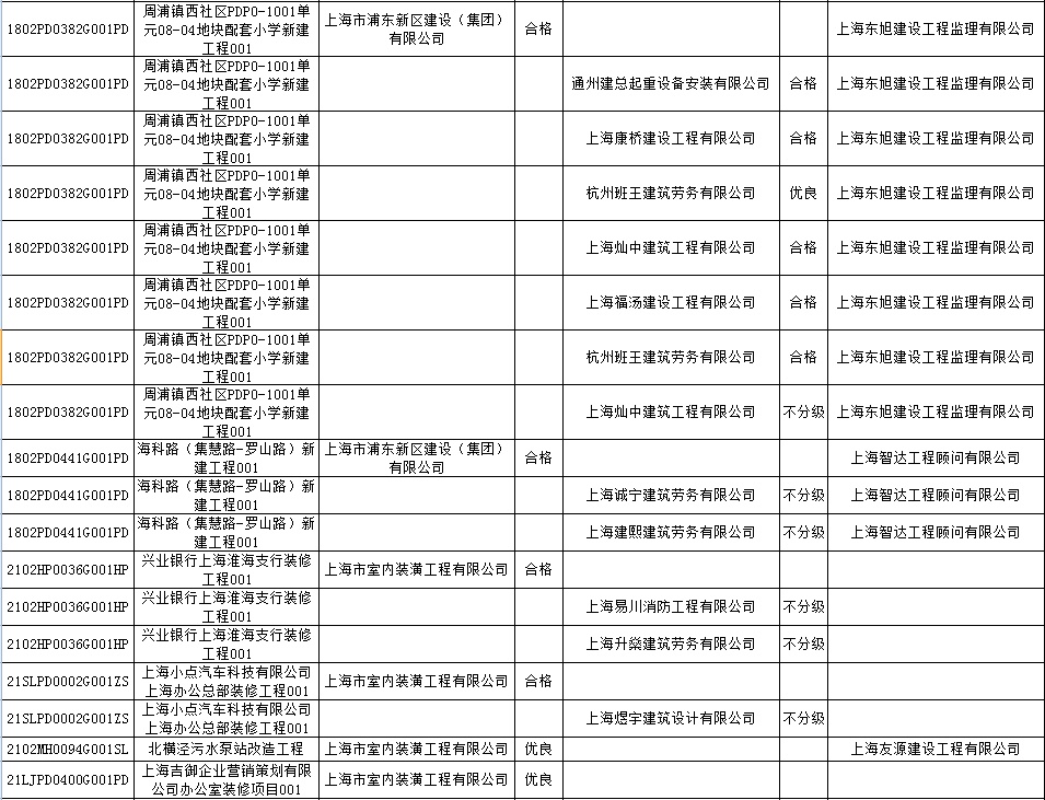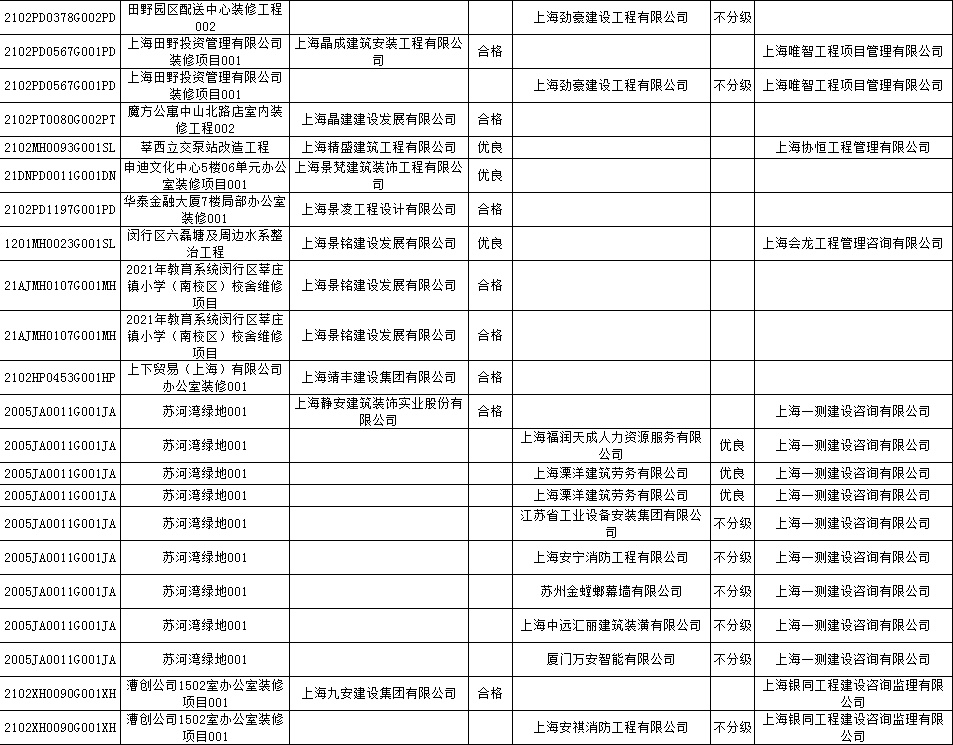 根据市住房城乡建设管理委印发的《上海市建筑施工安全生产标准化考评规范》,市建设工程安全质量监督总站对2022年1月份本市建设工程安全生产标准化考评结果进行公示。