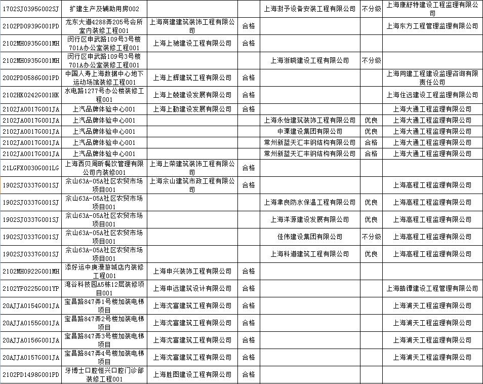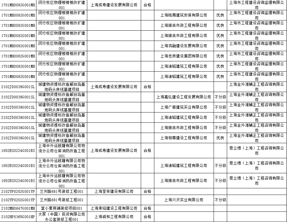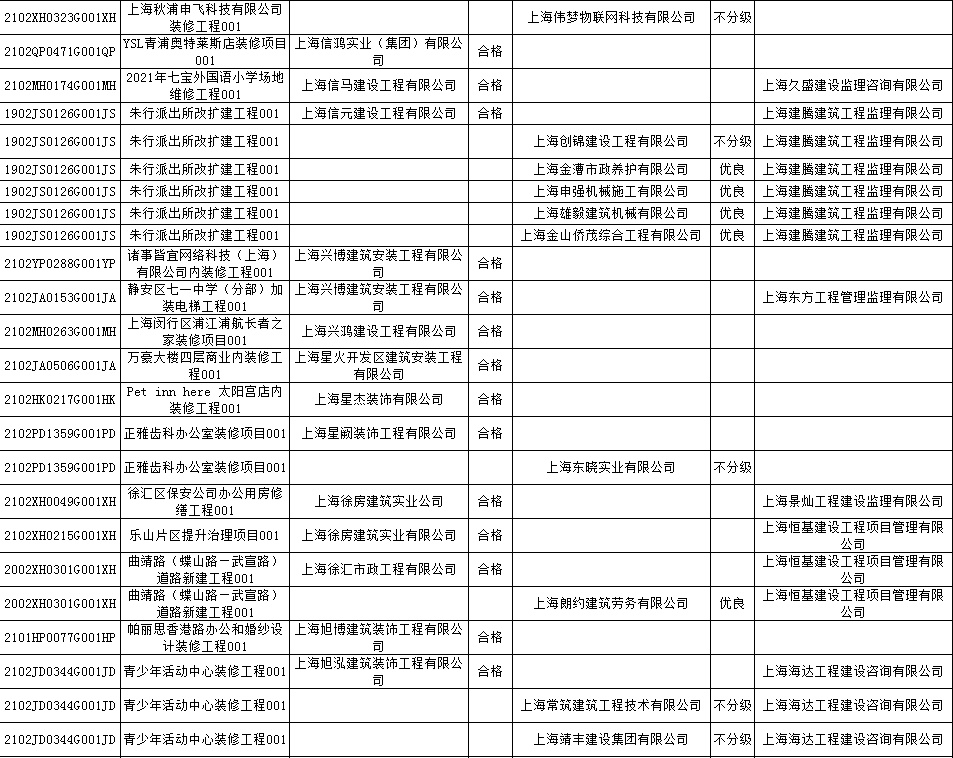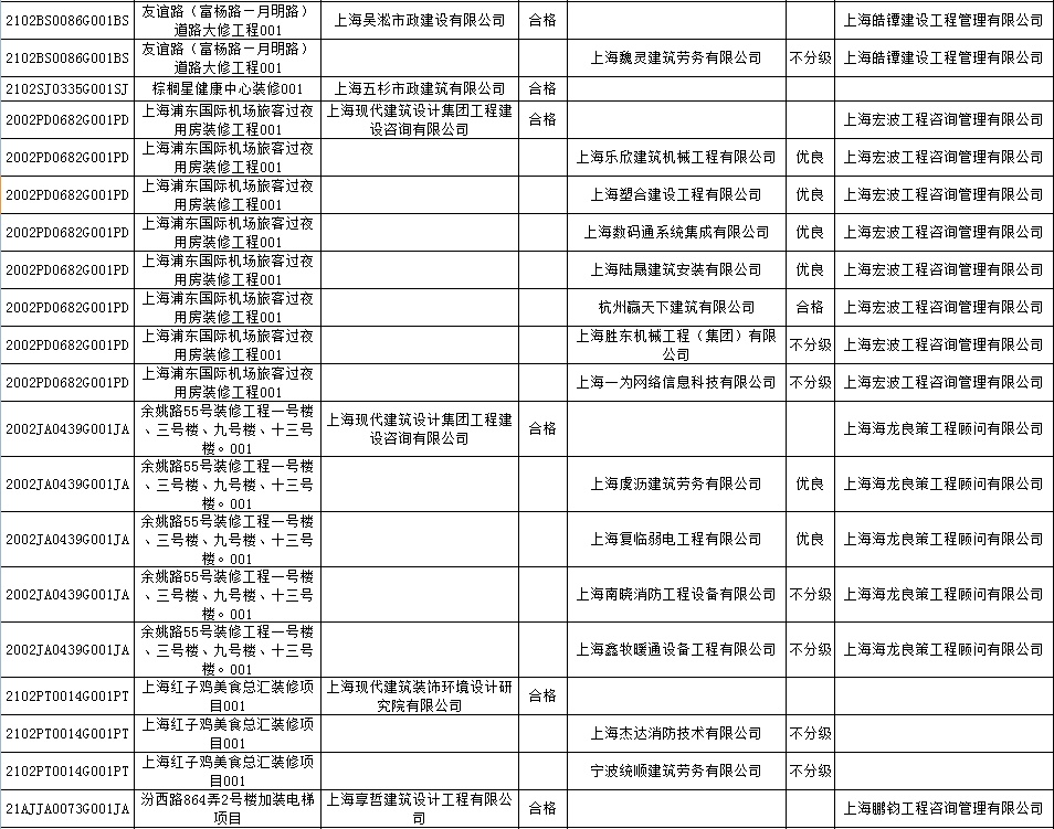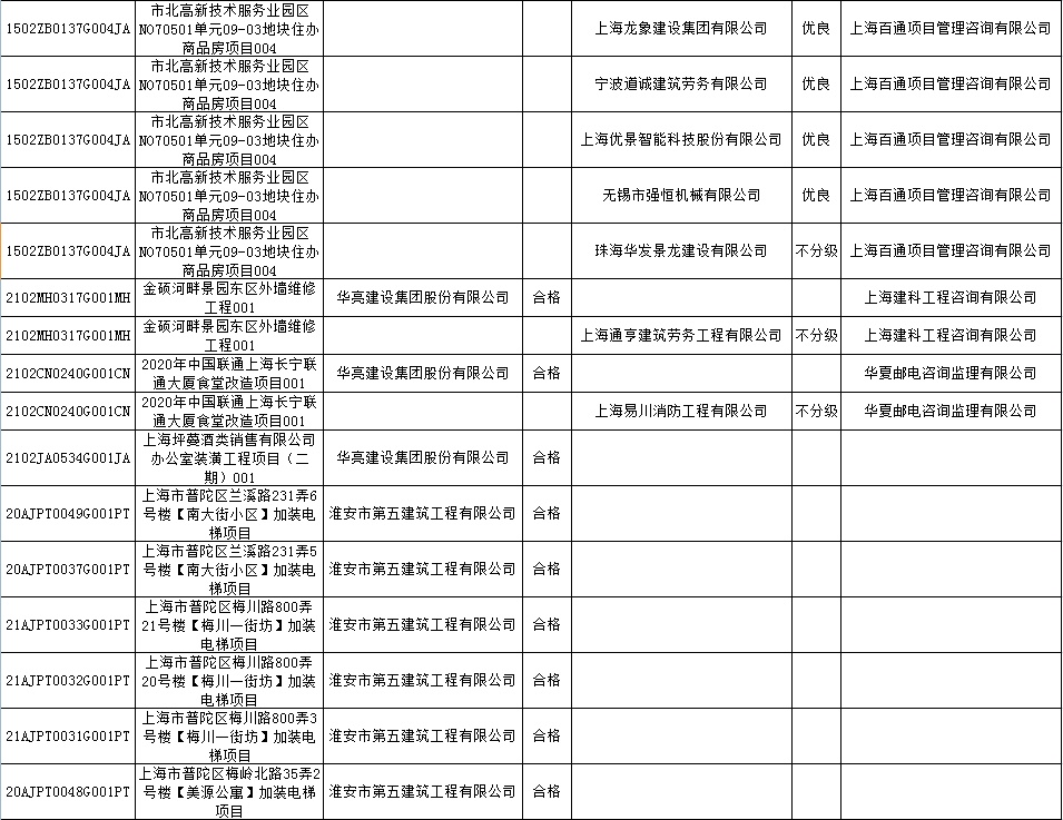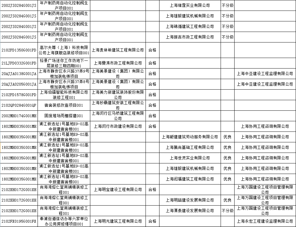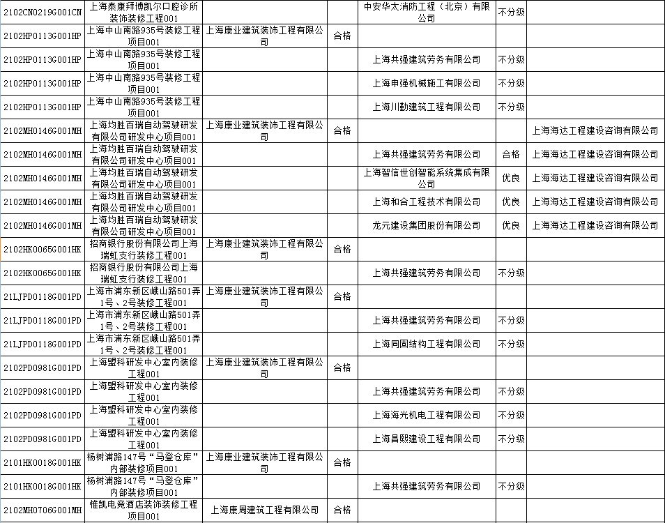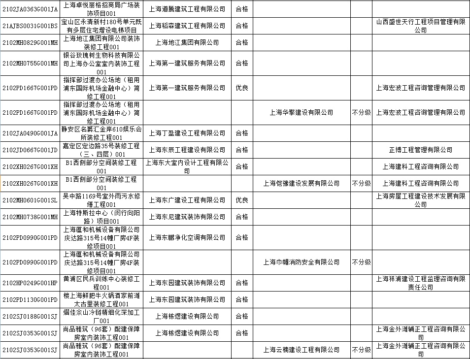 根据市住房城乡建设管理委印发的《上海市建筑施工安全生产标准化考评规范》,市建设工程安全质量监督总站对2022年1月份本市建设工程安全生产标准化考评结果进行公示。