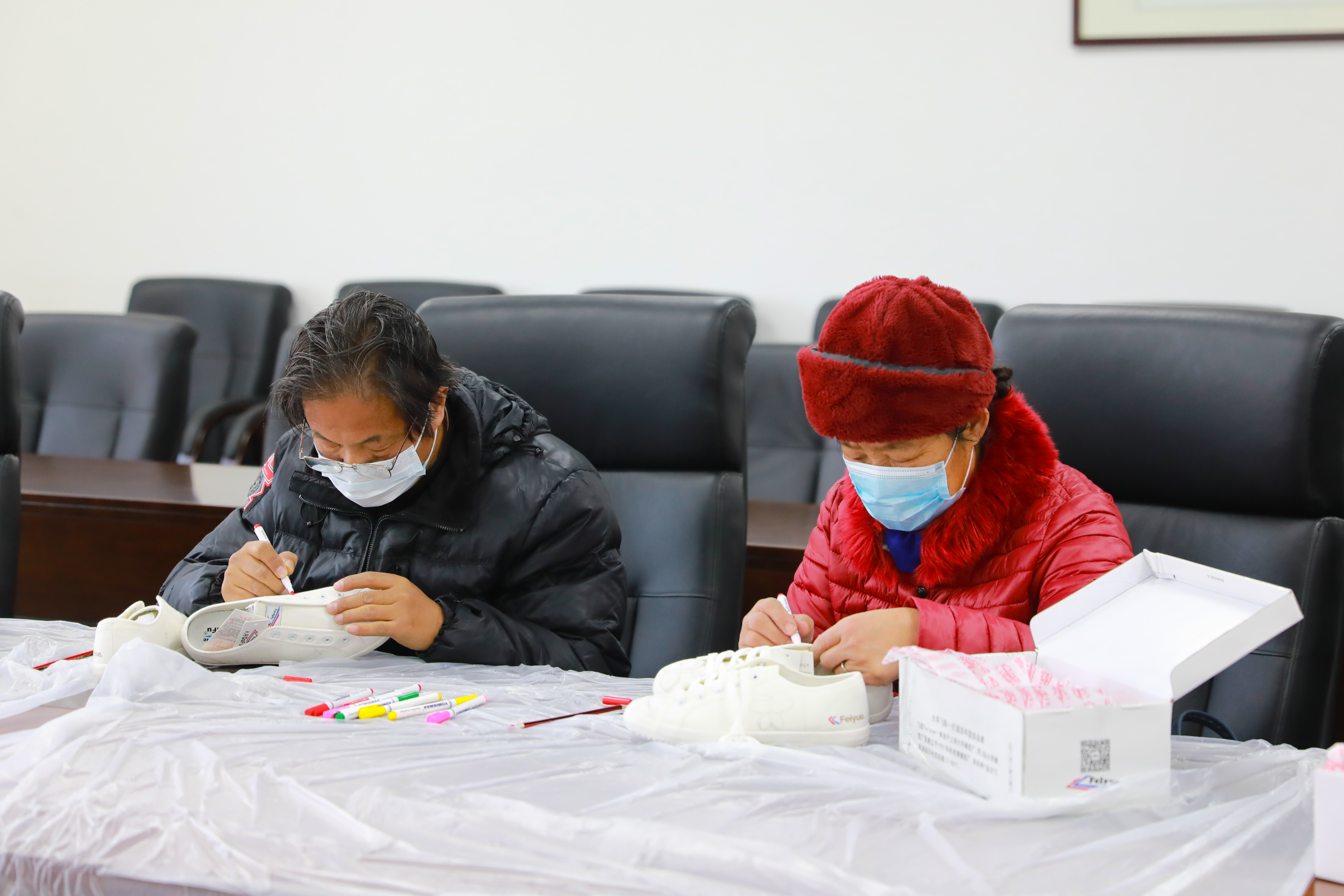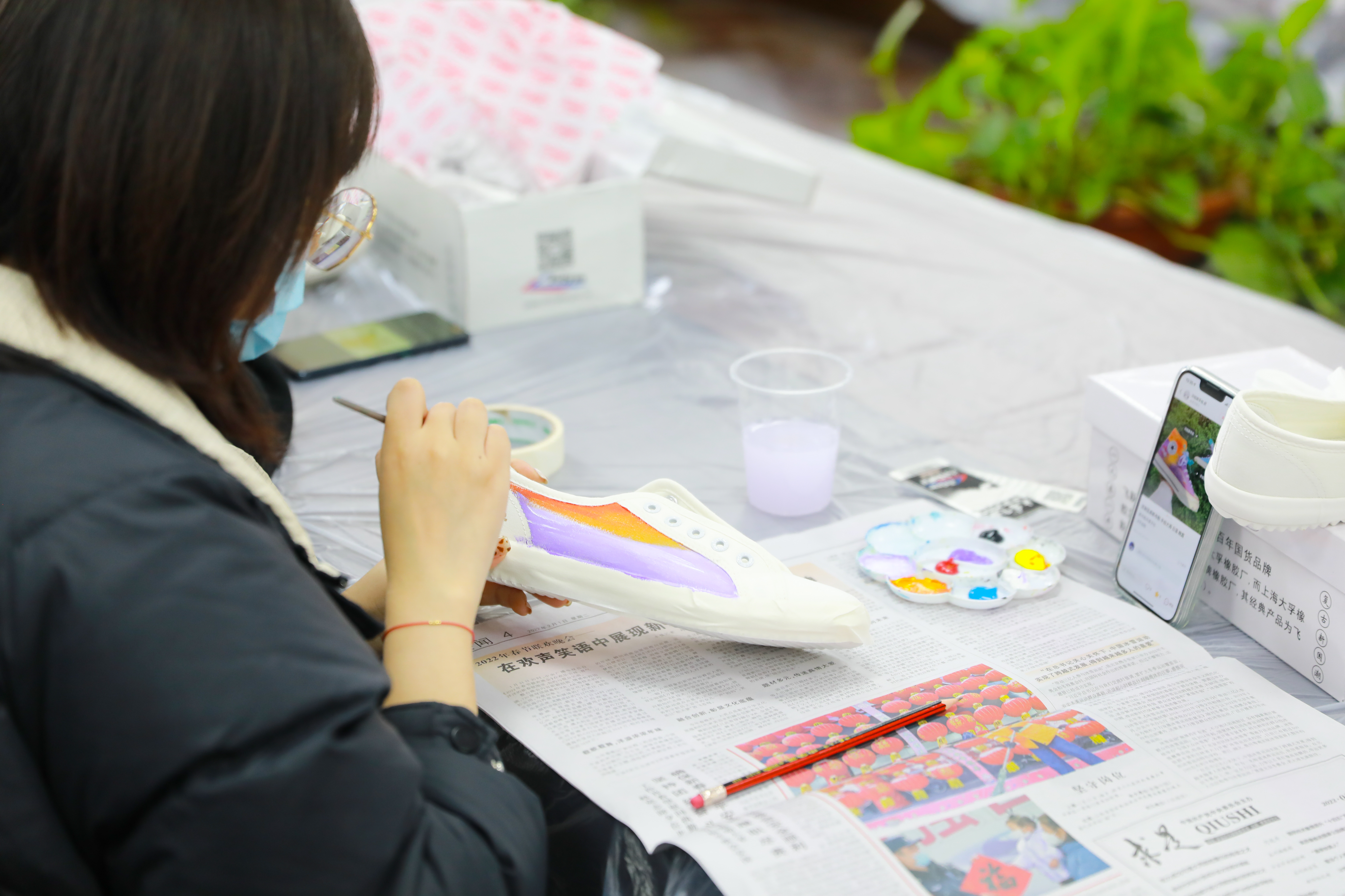 在鞋面上画上自己喜爱的图案,让每一双鞋成为独一无二的艺术品。2月25日下午,“国潮经典、创意无限”板鞋时尚创作活动在小昆山镇社区文化活动中心举行。
