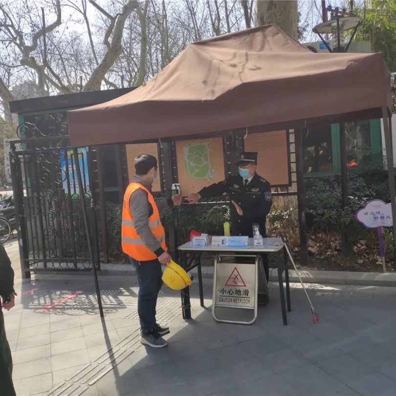 各区属公园入口处设立了体温检测点,及时提醒游客规范佩戴口罩,在出入口和重点区域设立防疫“三件套”及防护“五还要”宣传展板,并巡回播放语音提醒;各大型绿地醒目位置张贴防控告示,提请游客注意个人防护。同时与绿地所属街道大联勤共同对聚集人员进行现场劝阻,加强巡视频次。