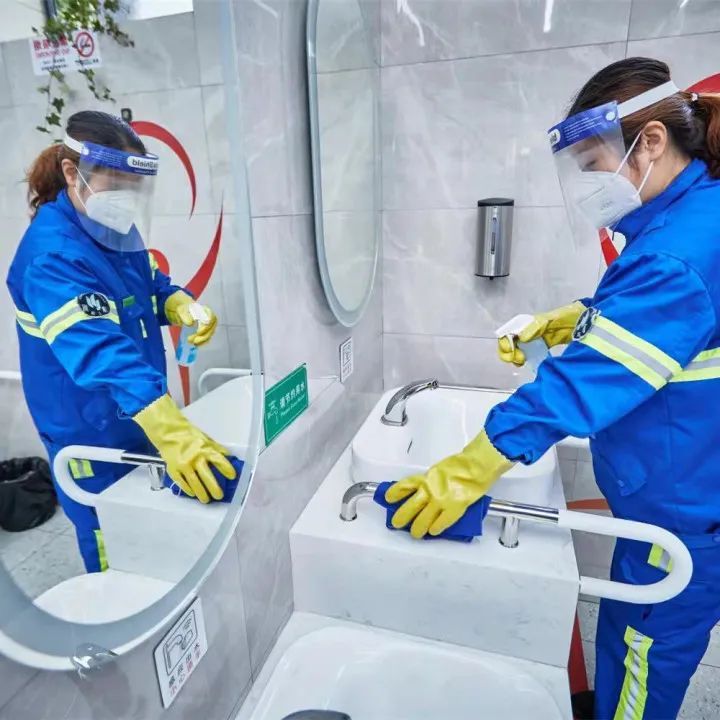 为给市民提供安全的如厕环境,各公司积极采取有效措施,对区域内环卫公厕进行全覆盖 每2小时1次的消毒保洁,严格落实“一客一洁一消”, 部分公厕采 用高温饱和蒸汽消毒机定期对洗手台、小便池、墙面进行清洁,并为保洁人员发防护面罩、口罩等个人防护用品。同时提醒如厕人员佩戴口罩,保持良好的公厕环境。