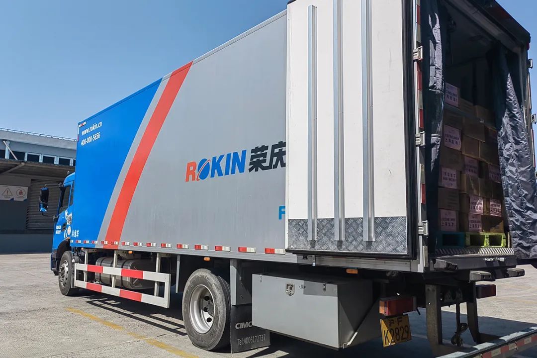 4月7日上午,荣庆物流合肥分公司派出爱心接力货运车,赴必斐艾食品公司拉货,并将这批物资通过物流车中转接力方式,从安徽六安于8日凌晨顺利运抵马陆镇。