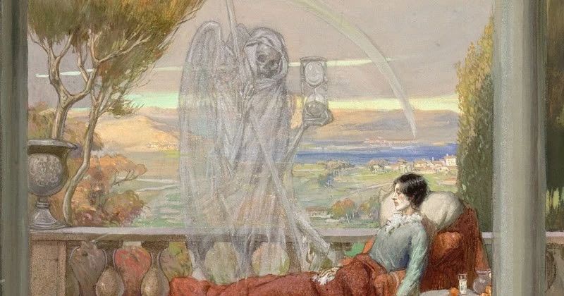 库珀(Richard T. Cooper)的水彩画以拟人化的骷髅天使描绘象征死亡的结核病。
