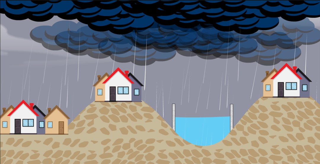 降雨强度增大,范围集中,城市下垫面情况发生变化最终导致了连续性降水超过了城市排水能力,致使城市内产生了积水灾害的现象,这一现象称为城市内涝。