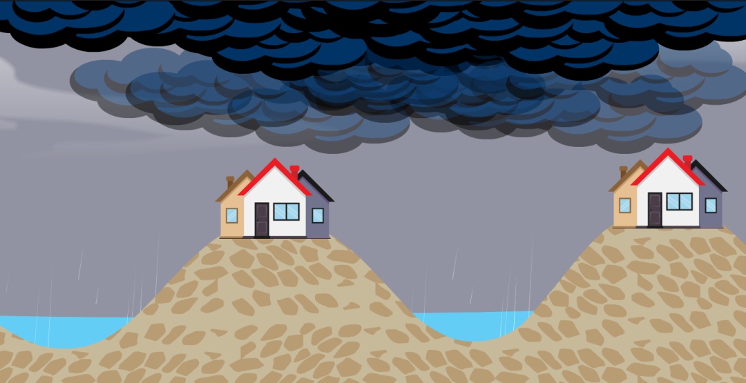 在城市形成和发展初期,建筑物选址一般在地势较高处,地势较低处作为降雨排水的行泄通道,避免建筑被淹。