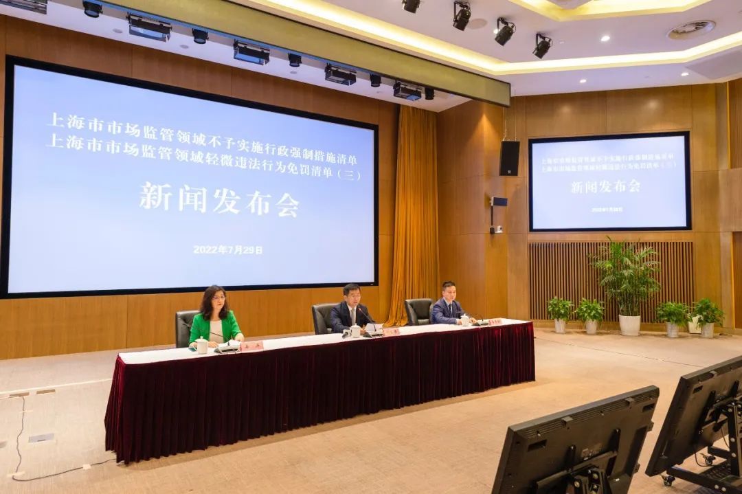 7月29日,上海市司法局、上海市市场监督管理局联合召开新闻发布会,市司法局副局长刘言浩、市市场监督管理局总经济师李孝猛共同介绍《上海市市场监管领域不予实施行政强制措施清单》(以下简称《不予强制清单》)及《上海市市场监管领域轻微违法行为免罚清单(三)》(以下简称《免罚清单(三)》)有关情况。