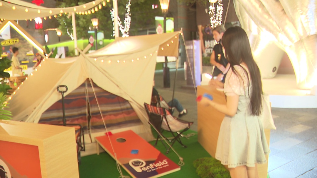 8月19日晚上7点半,记者在现场看到,运动长廊里,年轻户外运动爱好者正在这里比拼旱地滑板技艺;野外露营地上,时尚女孩正在这里投掷沙包比拼入袋数量,感受老上海的弄堂游戏;儿童小天地内,父母则带着孩子正在体验机器人抓娃娃的游戏……市民还可以在这里逛特色小摊、购买时尚小品,体验各种夏夜户外野趣。