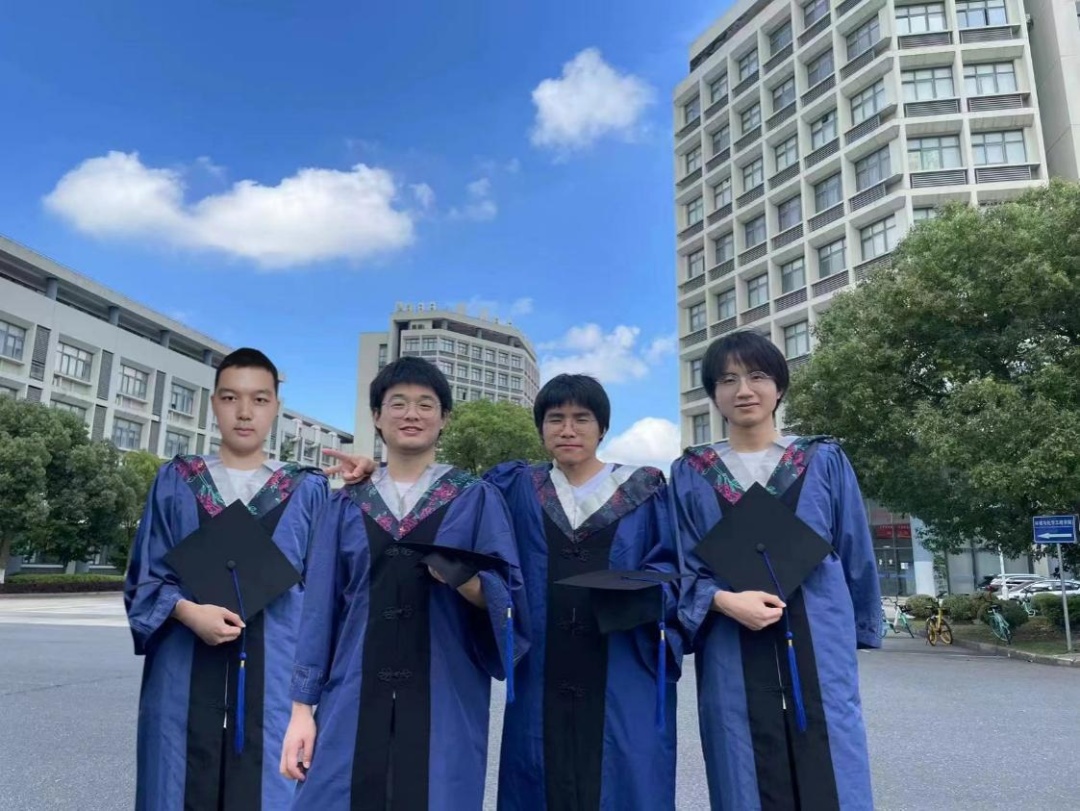 初逢上大,虽然四人具体研究方向有所区别,但他们仍坚持一起交流,互相帮忙测试数据资料、彼此监督,携手在科研上攻关克难。这种互帮互助的良好氛围,使他们四人更加确信:独学而无友,则孤陋而寡闻。更加难能可贵的是,他们四人志同道合,心中坚定着同一个目标。628寝室四人对科研都有着极大的兴趣。不知是哪一次寝室夜谈说起了读博的梦,从此继续深造的目标就在628寝室生根、发芽。