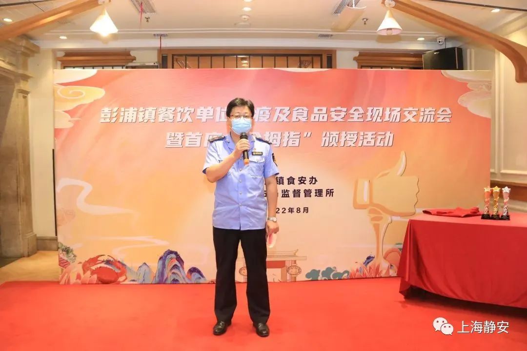 彭浦镇政府相关负责人向场内与会人员介绍了“金拇指”等奖项设置情况,并向930私房菜饭店颁授了首座“金拇指”奖项。