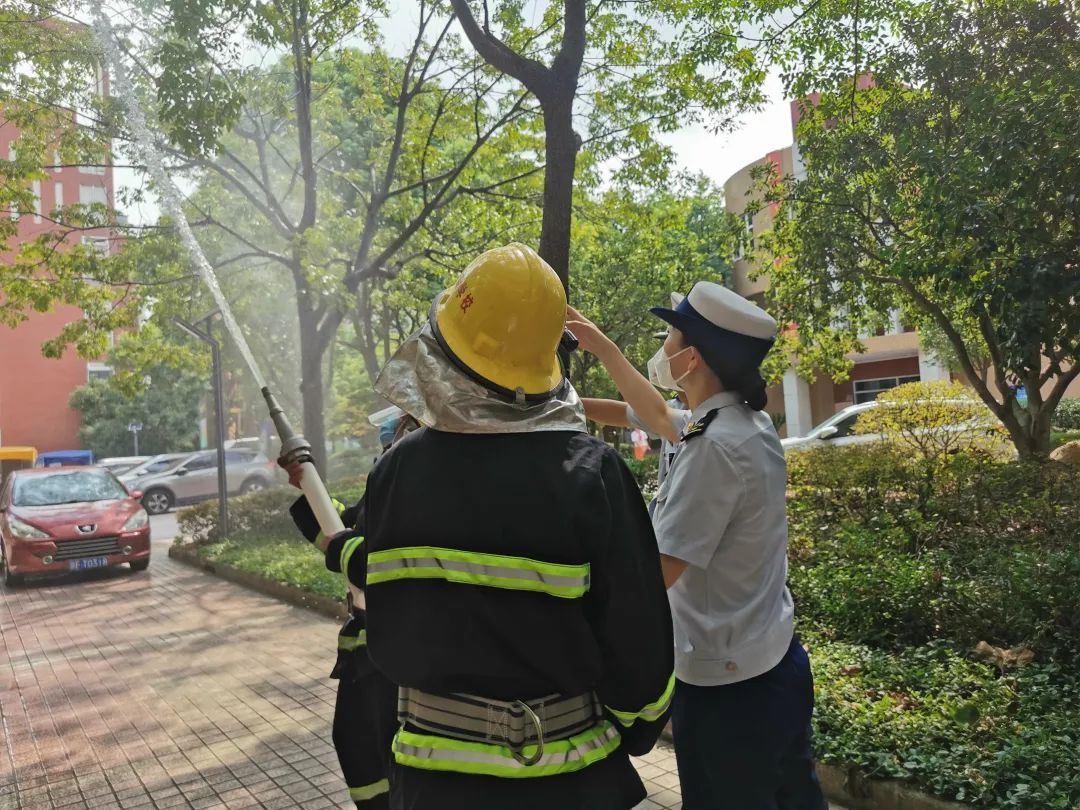 只见学生们在老师的指挥下,半蹲弯腰,捂住口鼻,按照既定逃生路线,沉着冷静、快速有序地撤离现场。与此同时,两名校园微型消防站队员穿好整套消防服,迅速赶往现场,打开附近的一处消防栓,将水带延伸,一端与消防栓接口连接,另一端接口与水枪连接,打开止水阀。转眼之间,高压水流喷薄而出,整个过程熟练而流畅。