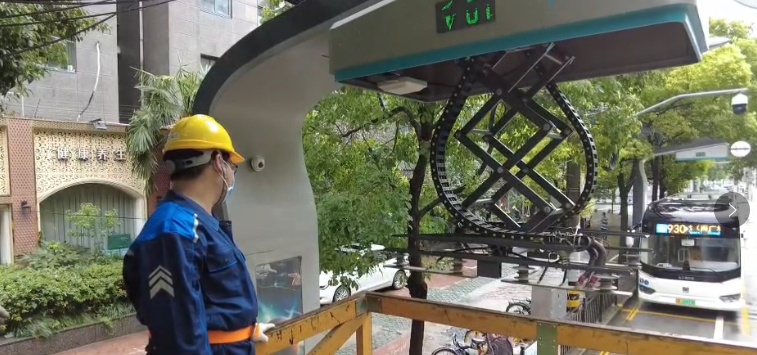 在接到报修电话后,现代交通公司的抢修车以最快速度赶到现场,在停放至准确位置后,三位抢修人员登上升降台,缓缓升至高处,经过观察,抢修人员发现树枝、树叶与充电桩缠绕的不深,所以大家决定,使用钢锯将这一小段树枝切断,将树枝拿走后,再将充电桩上面清理干净,确保没有杂物。