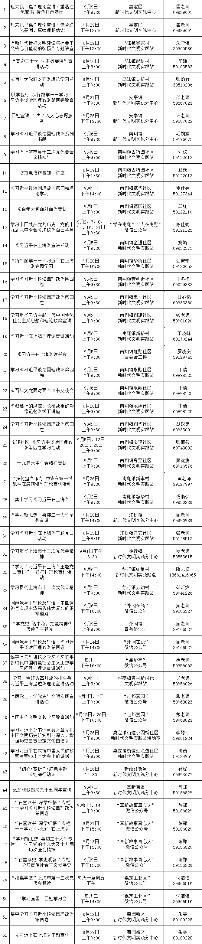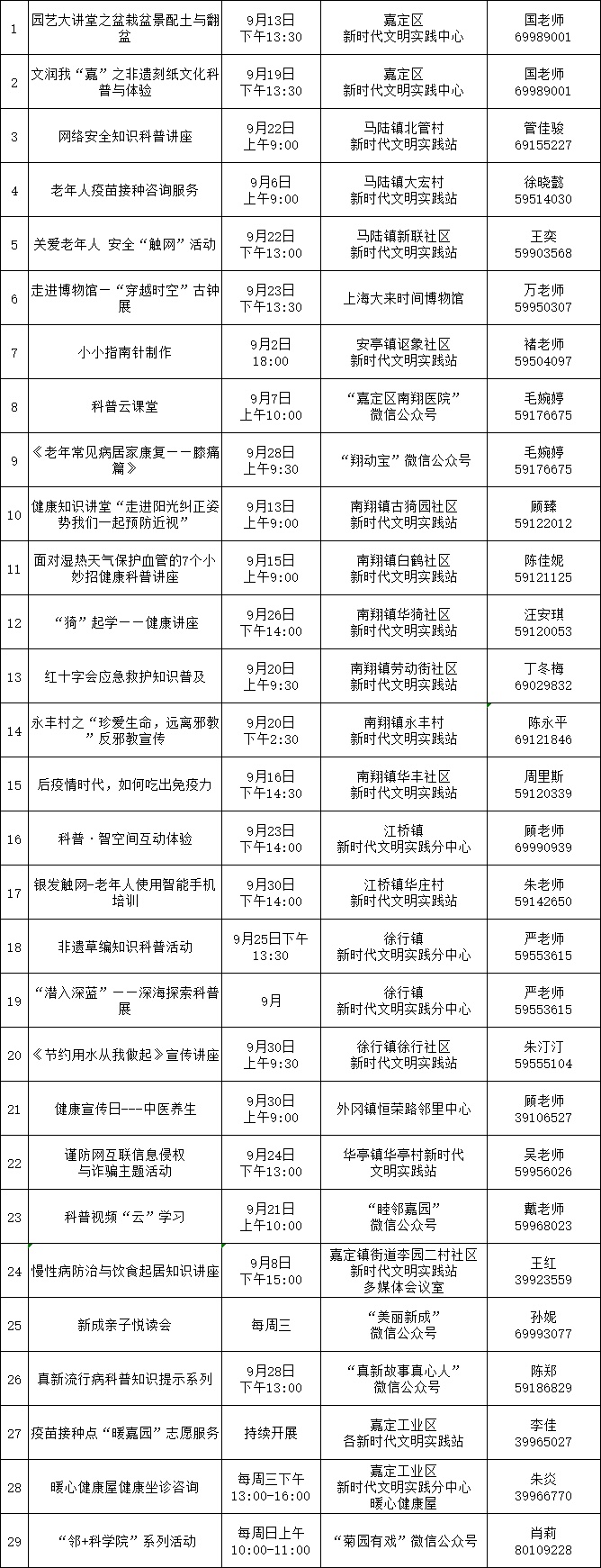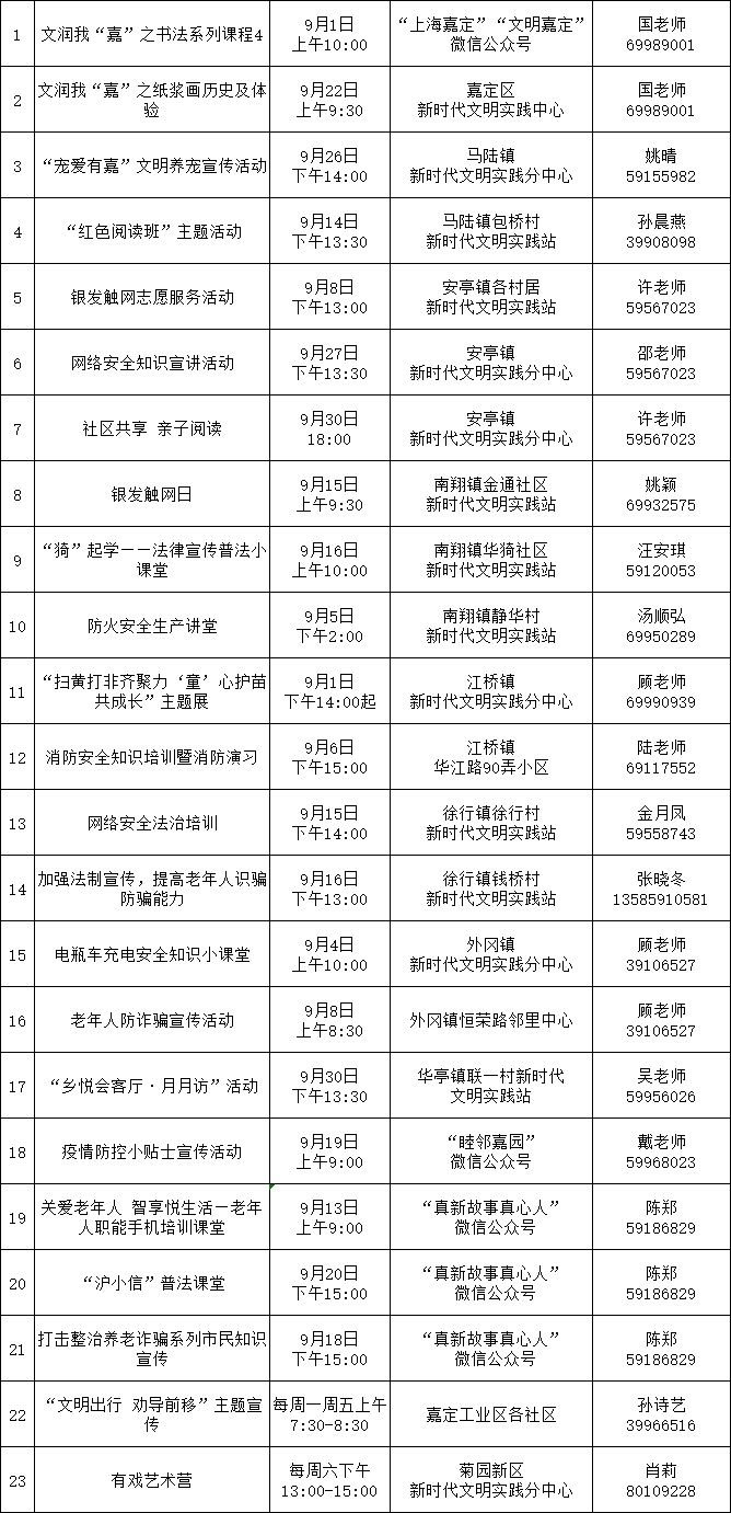 9月嘉定区新时代文明实践精选菜单