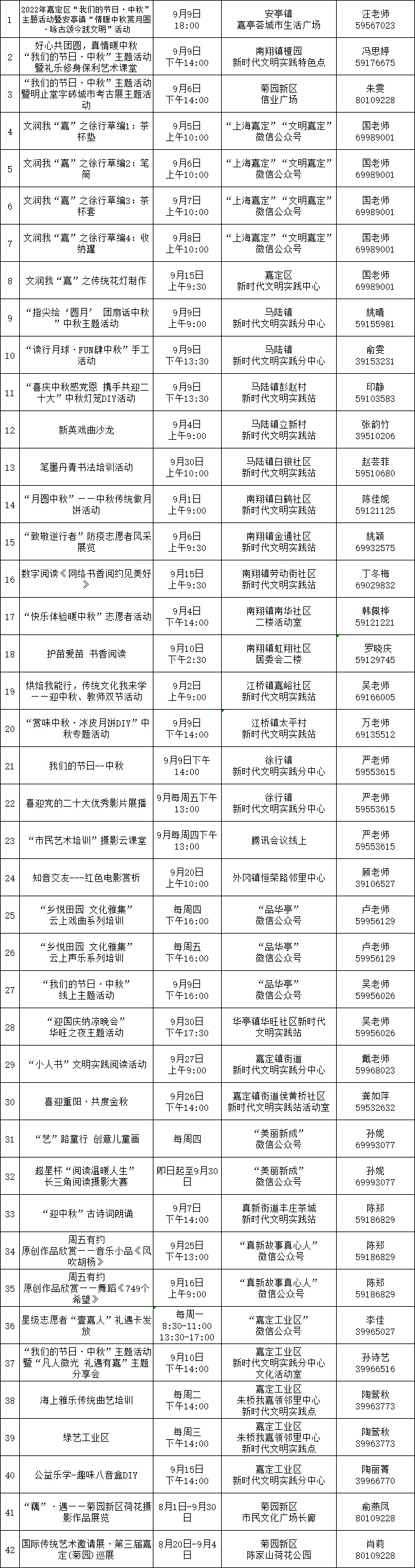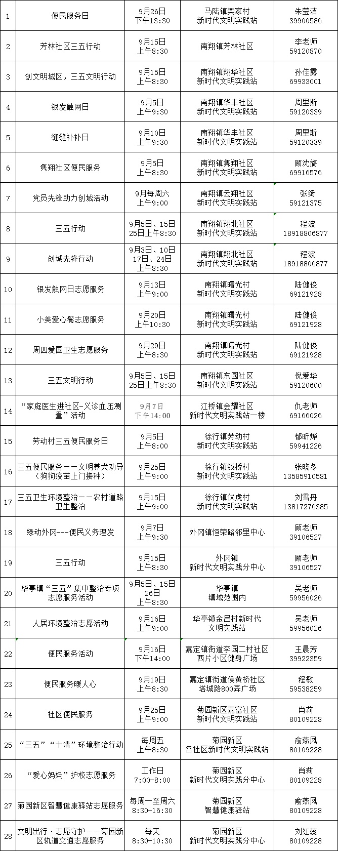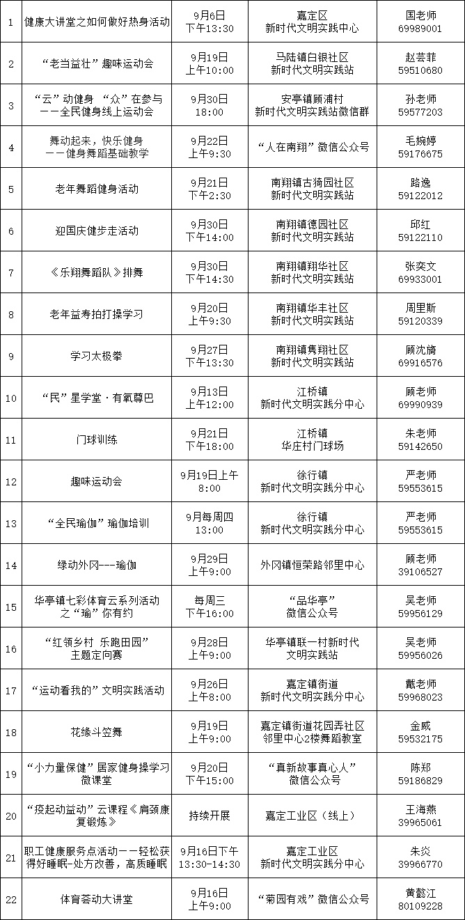 9月嘉定区新时代文明实践精选菜单