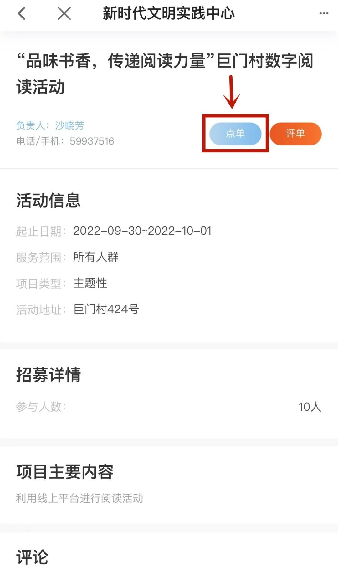 5、查询活动内容或与联系人沟通并点击“点单”