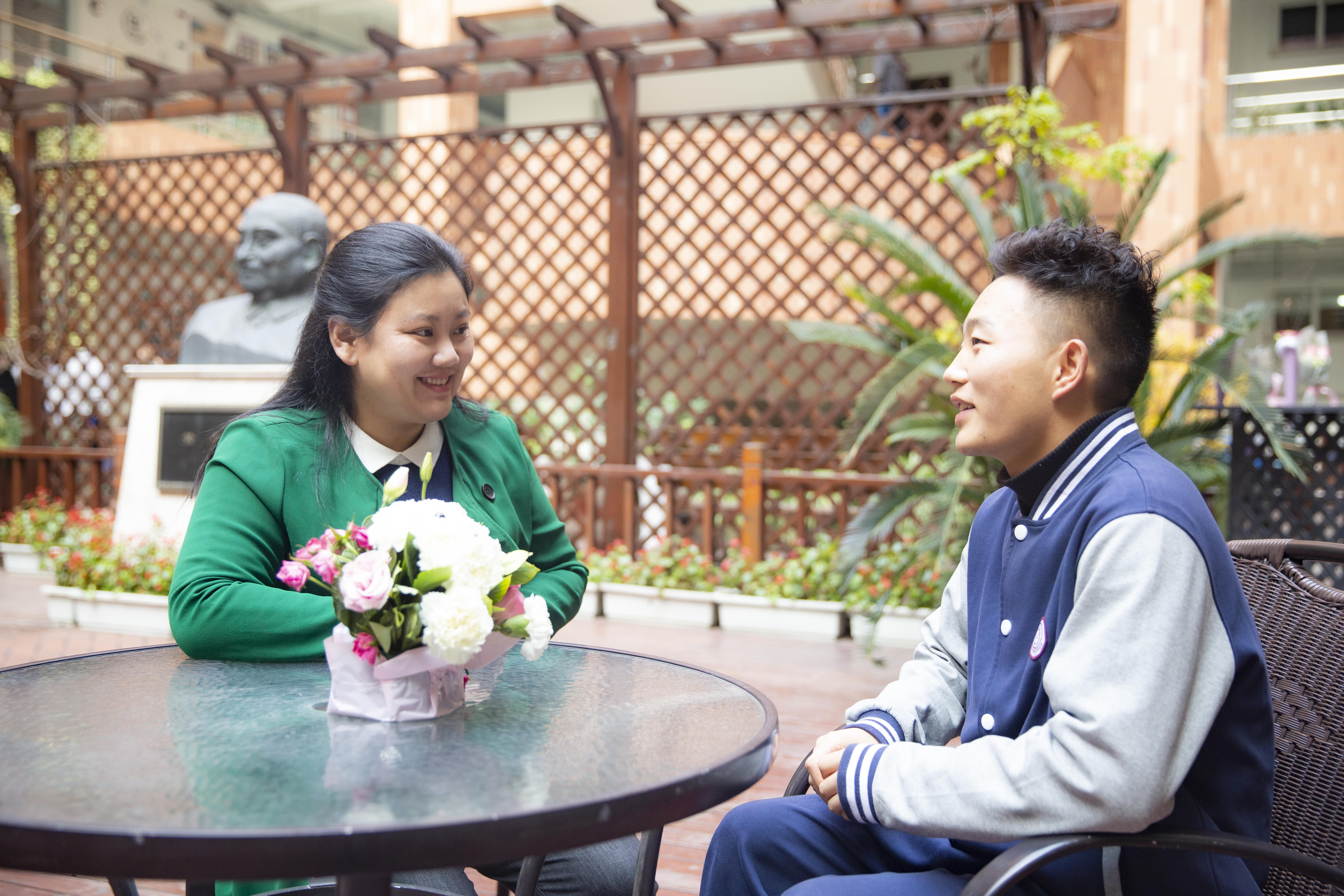 幸福是一种能力,当学生能感知到幸福,并为幸福而努力后,她开始引导学生传递幸福。于是,她陪着学生将花艺课的插花、中点课的点心、烹饪课的菜品等送到任课老师、保安叔叔、宿管阿姨的桌上,让学生体会努力和传递幸福的快乐。她陪着学生在爱心义卖活动中开设“黔味小铺“,将所学化为对贵州的向往,将劳动化为捐助的爱心。她陪着学生们给远方的亲人、师长寄去感恩卡,感谢他们曾经给予的幸福……