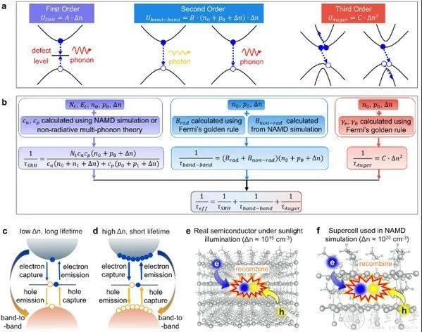 8月22日,微电子学院陈时友课题组与计算物质科学研究所褚维斌教授、龚新高院士、北京计算科学研究中心魏苏淮教授、中国科学技术大学赵瑾教授、华东师范大学吴宇宁教授、帝国理工学院Aron Walsh教授合作发表半导体中非平衡载流子寿命计算方法的研究进展,该进展以《基于非绝热分子动力学模拟的半导体中非平衡载流子有效寿命》(“Effective Lifetime of Non-Equilibrium Carriers in Semiconductors from Non-Adiabatic Molecular Dynamics Simulations”)为题发表于《自然-计算科学》(Nature Computational Science)期刊上。
