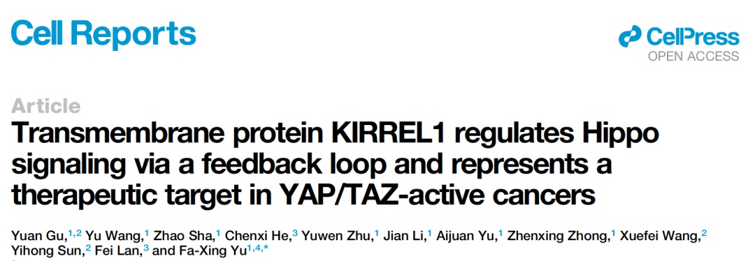8月30日,生物医学研究院余发星课题组在Cell Reports杂志以长文形式发表了题为“Transmembrane protein KIRREL1 regulates Hippo signaling via a feedback loop and represents a therapeutic target in YAP/TAZ-active cancers”的研究论文。该研究发现了Hippo信号通路全新的调控元件KIRREL1。