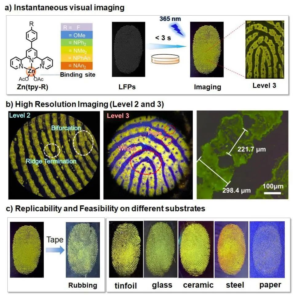 4.化学系涂涛教授课题组报道了利用三联吡啶锌络合物对潜指纹进行瞬时、高分辨率的可视化识别