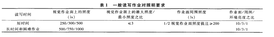 一般读写作业对照明要求