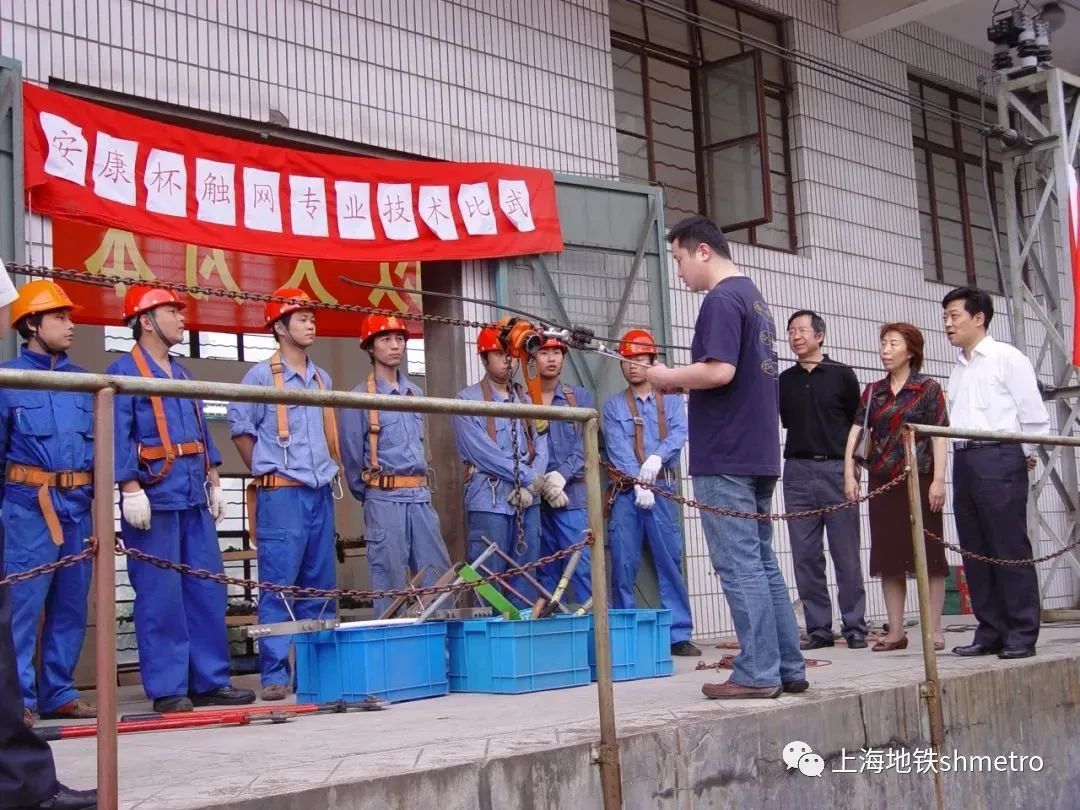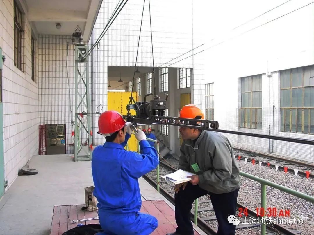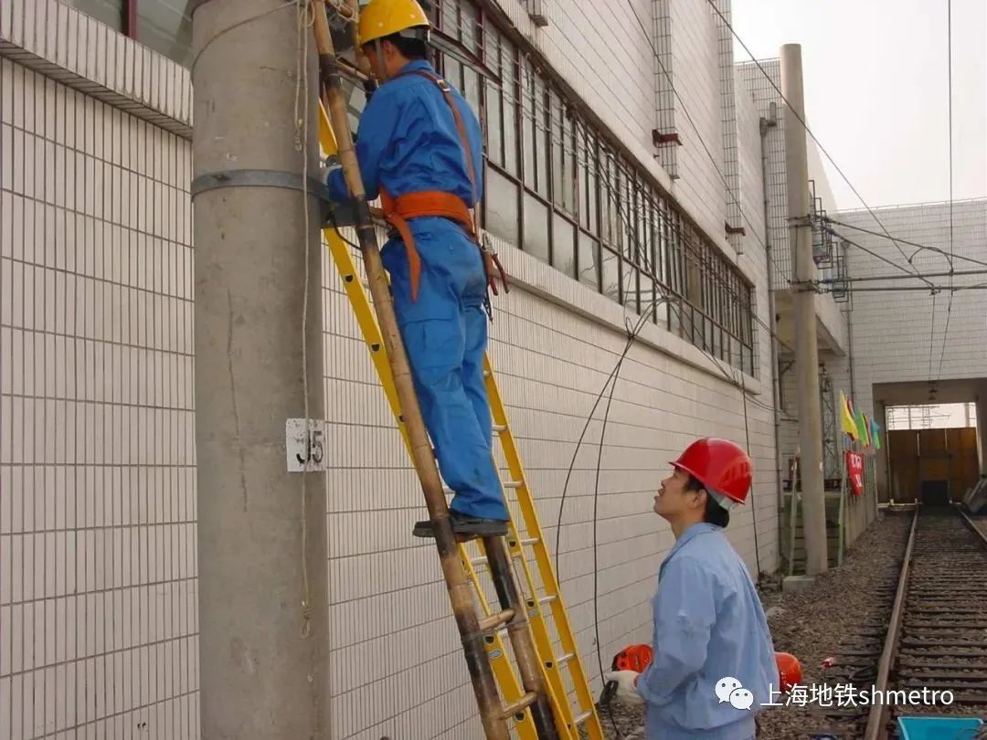 这是一张拍摄于1998年上海地铁接触网检修作业的照片。接触网系统作为供电设备中的唯一无备用设备,其运行状态极易受到环境影响,这对触网检修作业提出了极高的要求。
