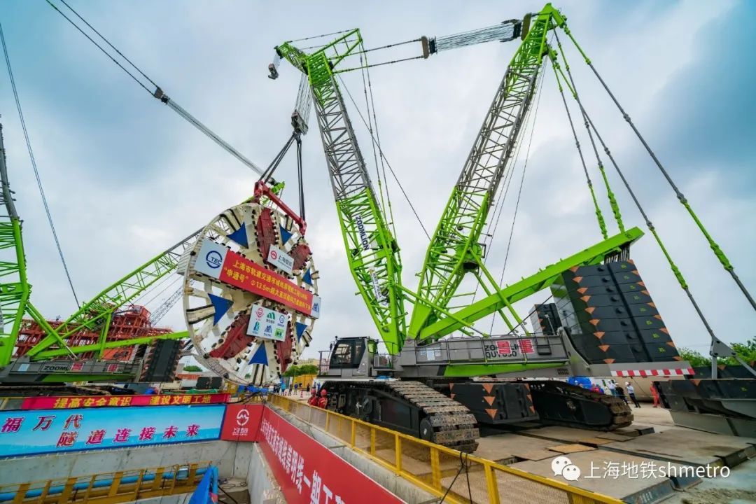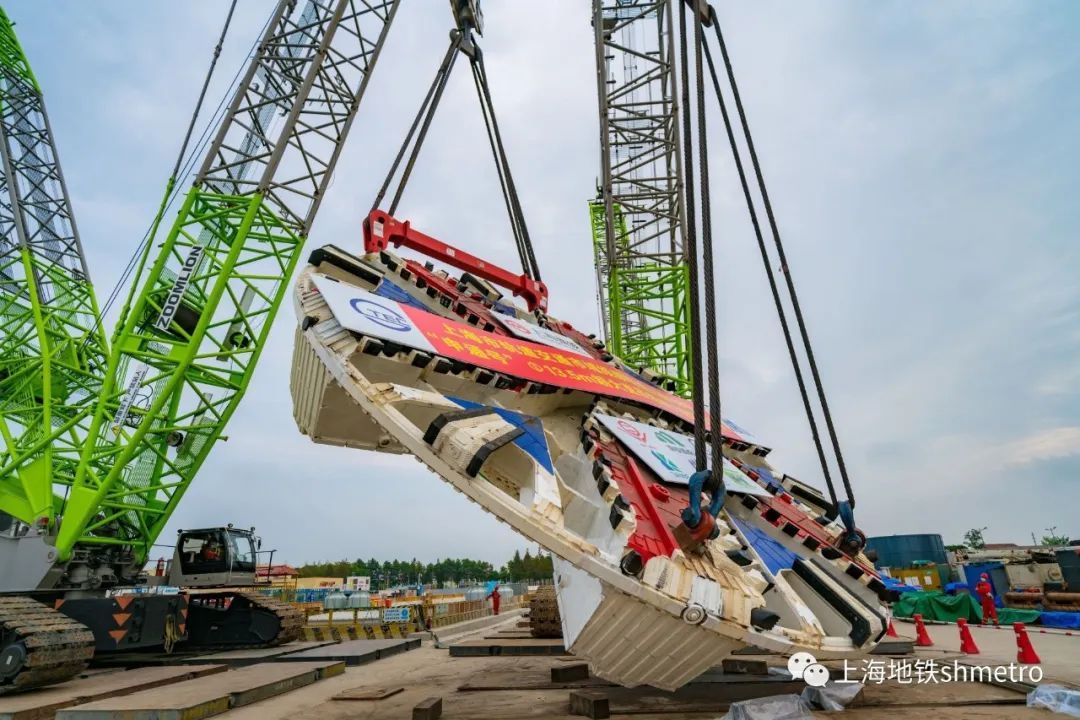 起吊、翻身、下井,在历时3小时后,“申通号”刀盘顺利完成下井任务。未来,“申通号”盾构机将完成崇明线南港越江段区间的掘进施工,全长7.74千米的南港区间隧道贯通后将成为“上海轨道穿越长江第一隧”。