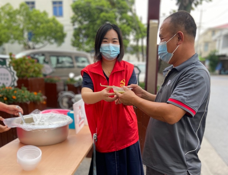 合庆居民区“红色加油站”免费为来往的快递外卖小哥提供消暑的绿豆汤,让小哥们在炎炎夏日奔忙的同时感受一份清凉。外卖员陈师傅开心地说:“我一直在这附近送外卖,平时,我们可以在这里休息、喝水,现在还有免费的绿豆汤,喝下去凉快又暖心。”