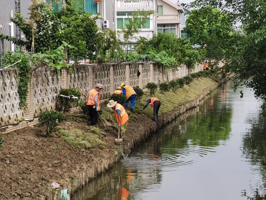 记者在漳浦河桥上看到,这段近300米的河岸上,菜地和瓜棚已被清理干净,养护单位的工作人员正在岸上种植灌木和草皮。安亭镇水务所工作人员介绍,这里的蔬菜基本都是村民私自种植。“过去,这里搭的丝瓜棚、豇豆棚等,高高低低、杂乱无章,很难看。现在铺上草皮,看上去就整洁多了。”路过此地的苏先生看到整改后的河岸,感到很高兴。