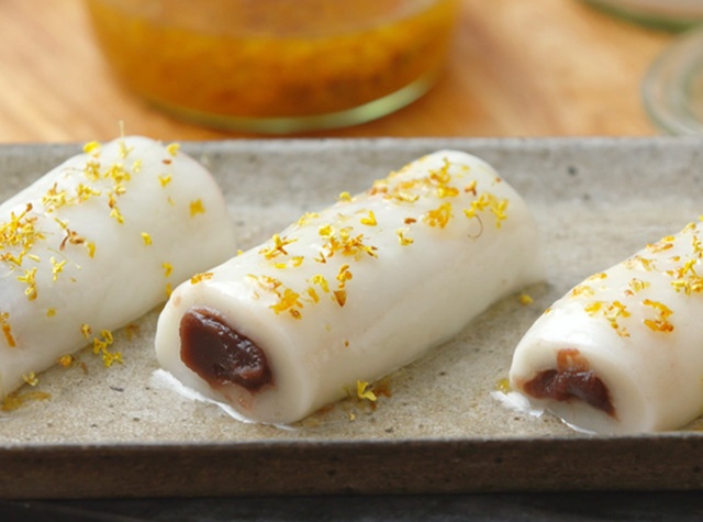 桂花条头糕是上海人的首选糕团之一。糯米粉制成的糕团里面包裹着香甜的豆沙,晶莹剔透的皮里隐约透出豆沙色,外观饱满,再撒上金黄色的桂花。一口咬下去,软糯可口、甜而不腻,口腔内满是桂花香,可谓色、香、味一应俱全。