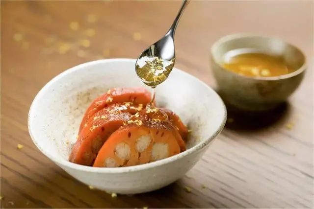 桂花糯米藕是江南地区独具特色的传统甜品,以其香甜、清脆,以及浓郁的桂花香气而享有口碑。糯米灌在莲藕中,配以桂花、红糖一起熬煮。几个小时的等待之后,原本洁白、清脆的秋藕变得柔软酥糯,糯米的香柔完全融入了藕的内心,糖藕又糯又甜,还带着一股沁人心脾的桂花香。