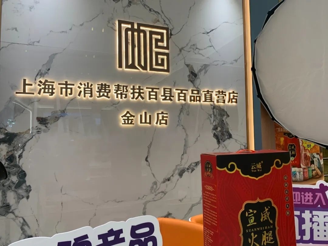 走进店内,宣威火腿、云南鲜花饼、原味蜂巢蜜等消费帮扶产品整整齐齐地摆放在货架上。这些来自千里之外的农产品将极大丰富金山市民的菜篮子。