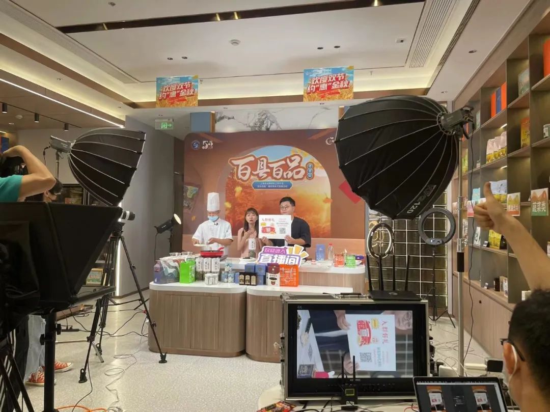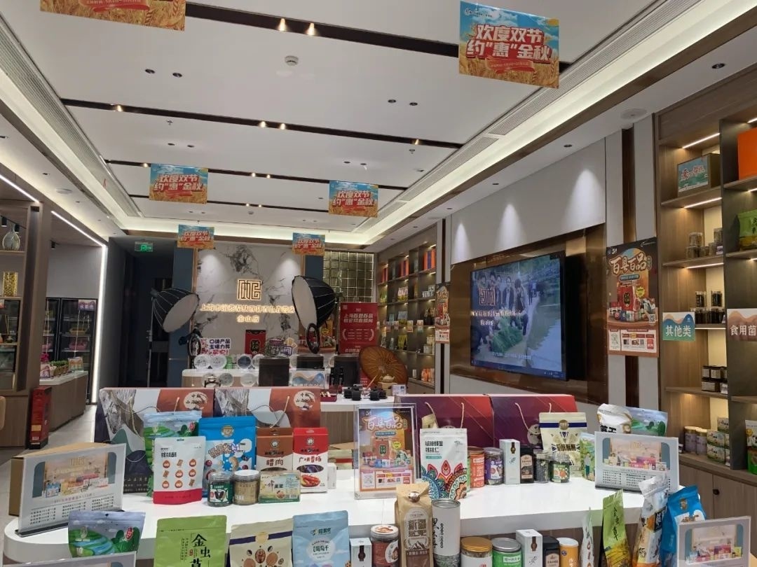 9月16日下午,“五五购物节”——申情购 沪爱帮“百县百品”展销活动之上海市百县百品金山直营店开业仪式及百县百品直播间进金山活动,在万达广场海汇街举行。