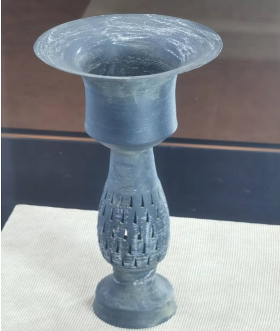 龙山黑陶作为古老的传统制陶技艺,以黑、薄、光、硬四大特征享誉陶坛,被称为“史前黑科技”。齐河张辉黑陶、齐河刘旋子工作室黑陶、胶州孔子六艺文化园黑陶,都在龙山黑陶技艺传承上做出重要贡献,甚至在薄镂空等方面超过了出土蛋壳黑陶的标准,这是让人感到欣慰的地方。