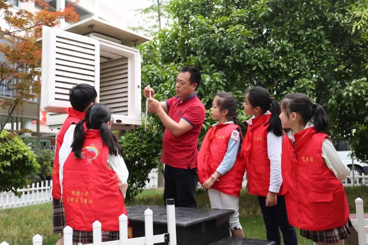 学校的气象科普教育持续走在国际前沿。从2006年开始建设“七彩星气象站”,到如今发展形成以气象科普为核心,集课程教学、实践活动、社团建设于一体的气象科普创新实践园,新普陀小学西校的校园内不仅建有气象站、实验室、生态暖棚、演播厅等实践空间,还组织研发了“气象与生活”“气象与环保”“小小气象+”主题课程,开设如“七彩星”气象社团、物候菜园社团、海绵学校社团、气象主播社团等科技社团活动,通过气象与自然,科学与人文,动脑与动手三方面结合,全面提升学生科学素养。此外,学校也曾多次组织学生参加气象科普研学之旅,为学生搭建与美、德等国的国际交流平台,以跨校合作、跨区域交流的方式不断拓宽学生的眼界。