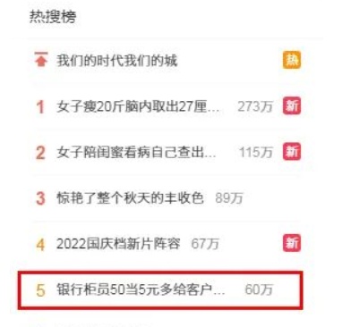 话题#银行柜员50当5元多给顾客1万8#