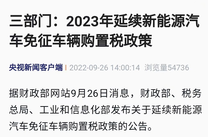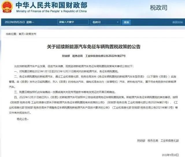 为支持新能源汽车产业发展,促进汽车消费,现就延续新能源汽车免征车辆购置税政策有关事项公告如下: