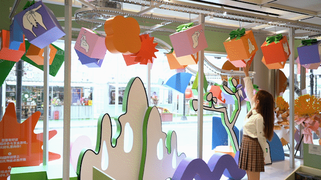 该店位于上海仿明清建筑中最高最大的商用楼宇——天裕楼。正门入口处,巨型礼物传送带非常吸睛,让路人忍不住想进去一探究竟。走进店内,一股年轻的气息扑面而来,五颜六色的视觉氛围更让人感到时髦活力,仿佛一夕之间便穿越百年。