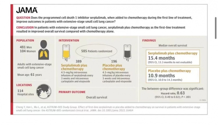 近日,由程颖教授牵头的国际多中心研究——ASTRUM-005研究在全球四大顶级医学期刊之一的《美国医学会杂志》在线发表,成为全球首个登上JAMA主刊的小细胞肺癌免疫治疗临床研究。