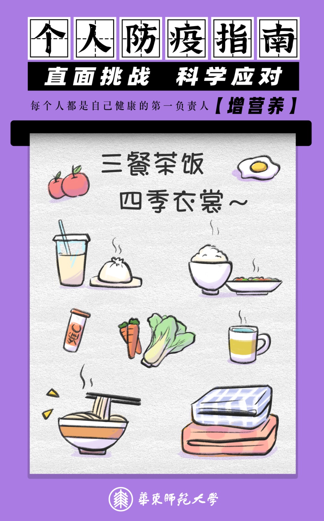 有些同学说我只喝白粥行不行,回答是不行,需要摄取足够的蛋白质,鸡蛋、牛奶、肉制品是必须的,考虑到部分感染者有较严重的胃肠反应(恶心呕吐),一个小建议是少食多餐,每餐量减少增加餐数。