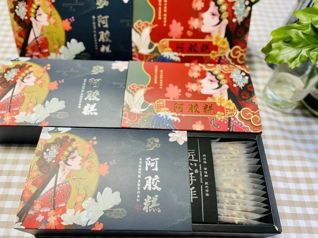 古时阿胶服用起来非常麻烦,打粉冲服口感也不好,为了食用方便又好吃还有助吸收,老祖宗配合阿胶发明了一种食用阿胶的方法:把阿胶用黄酒烊化发挥药效后加入核桃、红枣、枸杞、黑芝麻、冰糖搭配熬制成糕,就变成了好吃功效也更好的阿胶糕了。现代的阿胶糕更进一步,切片真空包装,干净卫生随时可以食用,非常方便又特别美味!