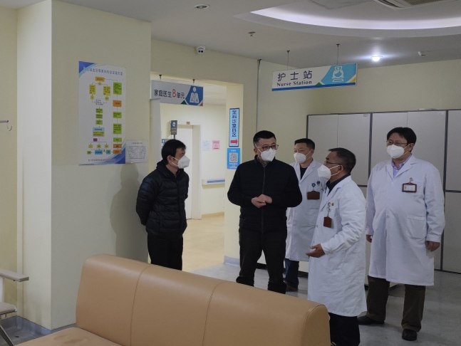 下午,陈尔真又来到欧阳路街道社区卫生服务中心,实地察看了发热哨点诊室、药房、病房等区域,了解发热患者接诊流程、患者数量、小分子药物使用情况以及资源配置等情况,并现场指导解决工作中的难点问题。