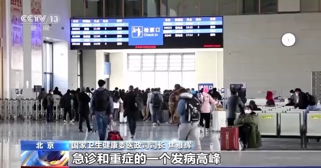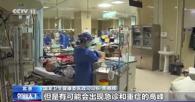 国家卫生健康委医政司司长 焦雅辉:从现在全国的情况来看,全国主要的城市,也就是直辖市、省会城市,包括一些计划单列市,这些中心城市正在渡过或者已经渡过感染的高峰。现在从这些大城市的情况来看,急诊和重症的高峰,尤其是急诊也出现了回落的迹象,重症救治是处在一个高位平台期。在春运之前,中小城市和农村地区实际上也已经迎来了感染的一个高峰。根据这个趋势来看,在春运期间有可能会迎来这些中小城市和农村地区急诊和重症的一个发病高峰。