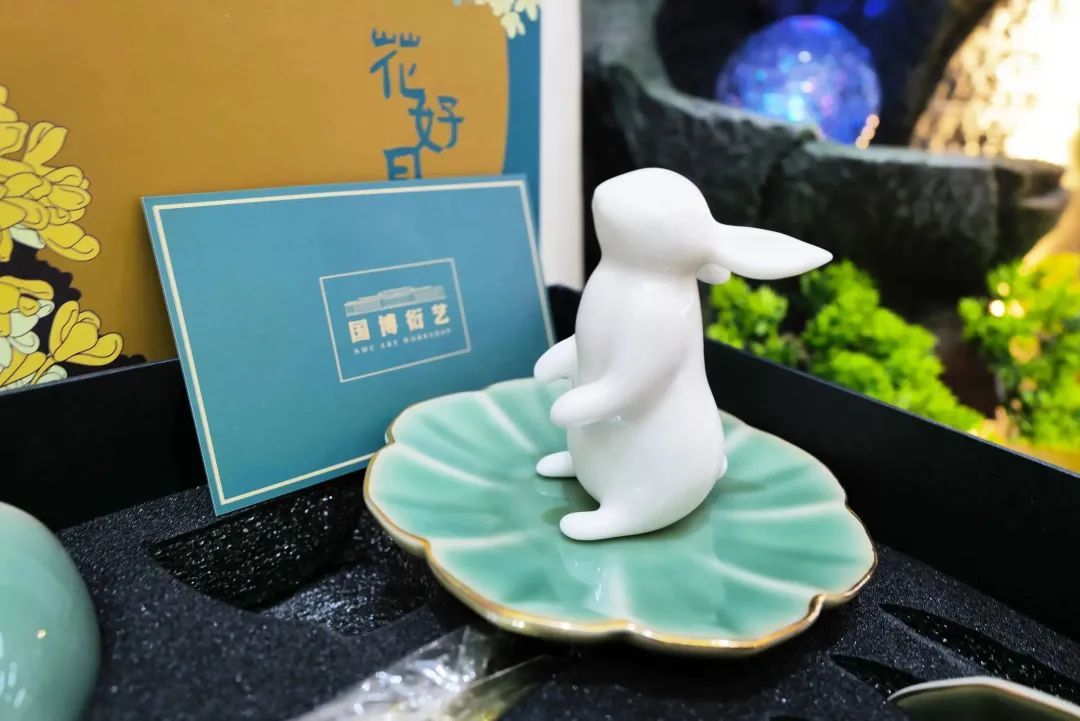 在新世界城4楼的亚祖空间,不少市民正在挑选带有兔子元素的文创产品。相关负责人告诉记者,最热门的当属“花好月圆”系列,“该系列是去年国博在中秋期间推出的产品,灵感源自于国博的文物月宫铜镜和西周玉兔,所以无论是茶具礼盒还是胸针首饰等,都在外观上融入了兔元素,恰逢今年兔年,也让这些有着团圆喜悦含义的文创再次走俏。”