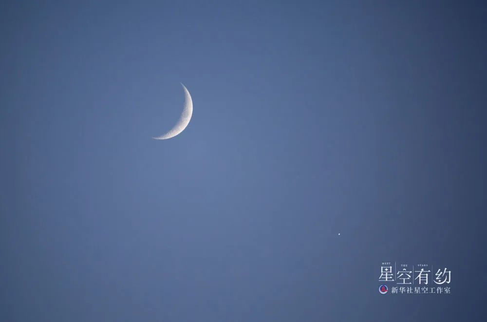 2021年11月8日傍晚在江西省九江市都昌县拍摄的金星合月。新华社发(傅建斌 摄)