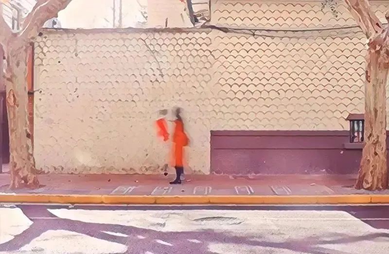 在人来人往的新华路,用手机定格画面,常常可以拍到行人来去匆匆的残影。而在路边的艺术橱窗里,同样有着这样一幅生动街景——冬日的新华路,阳光倾泻而下,街边的行道上,两位身着红衣的女子,先后经过梧桐树影, 彼此交汇,又奔赴向不同的目的地……