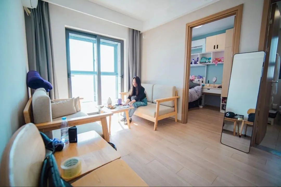 宿舍区各项基础设施种类齐全,每间宿舍覆盖校园网络,配有床、衣橱、书桌、椅子、空调、洗烘一体机、独立卫浴,以及配有冰箱、饮水机和电磁炉的独立厨房。