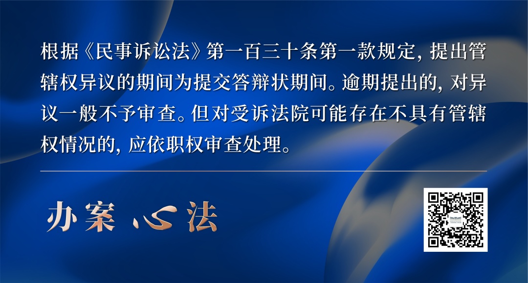 《民事诉讼法》第一百三十条第一款规定,人民法院受理案件后,当事人对管辖权有异议的,应当在提交答辩状期间提出。人民法院对当事人提出的异议,应当审查。异议成立的,裁定将案件移送有管辖权的人民法院;异议不成立的,裁定驳回。