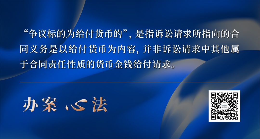 对“诉讼请求为给付货币”不能做笼统理解。如当事人诉请支付逾期交货违约金,其诉讼请求实际所指向的合同义务为按约定时间交货,即“争议标的”并非给付货币。