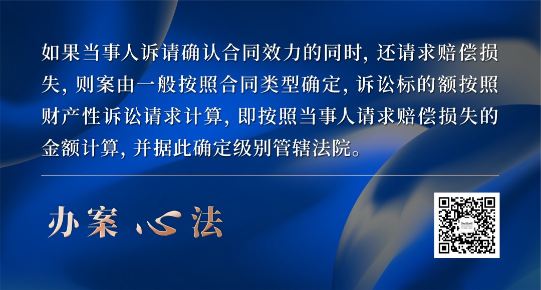 因此,确认合同效力纠纷案件之合同有效或无效的诉讼请求,并不涉及财产处理问题,为非财产性诉讼请求,其诉讼标的额为零,应据此确定级别管辖法院。