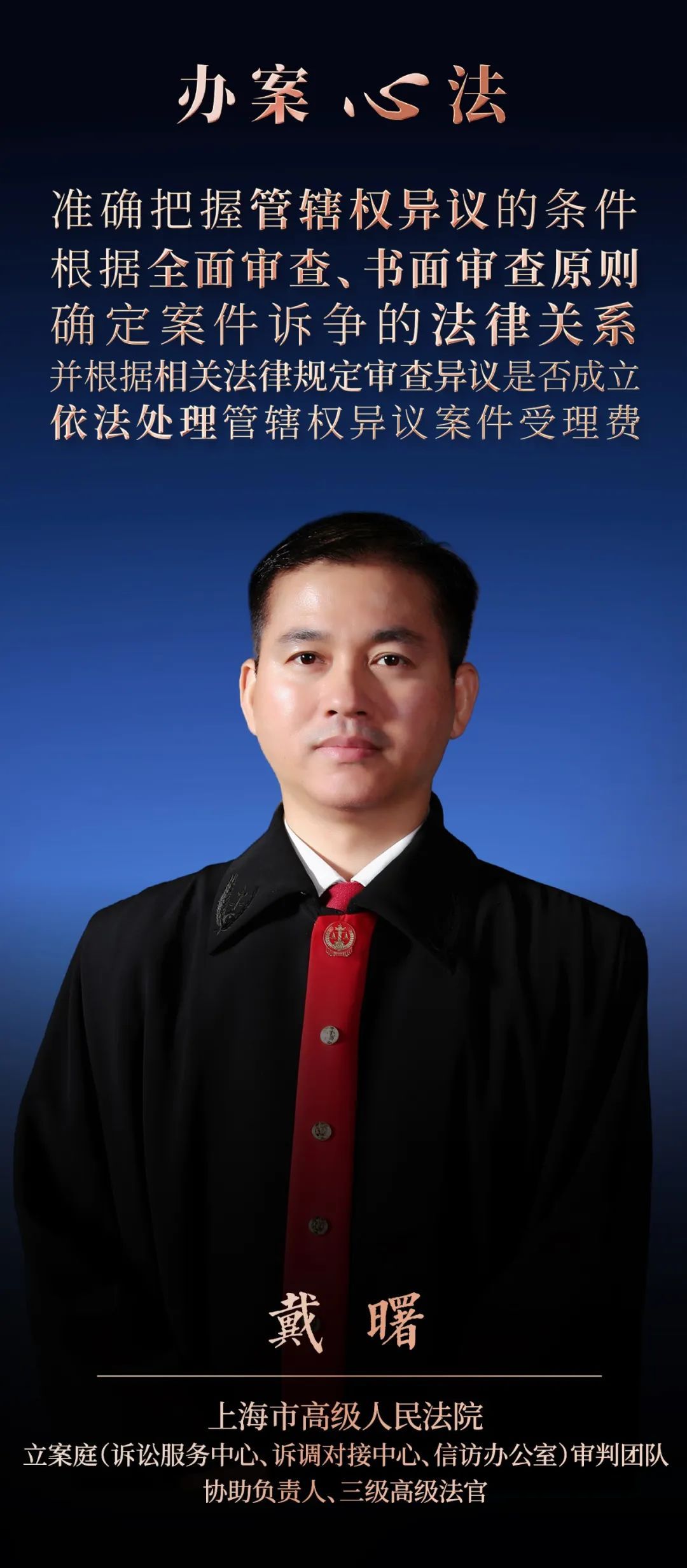 本期“办案心法”栏目“上海法院审判业务骨干”特别专题,邀请上海法院审判业务骨干,上海市高级人民法院立案庭(诉讼服务中心、诉调对接中心、信访办公室)审判团队协助负责人、三级高级法官——戴曙为我们讲解审查民商事管辖权异议案件的3个步骤。