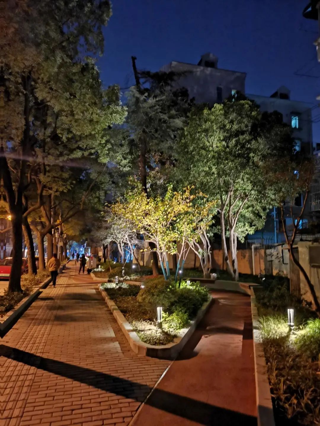 时而出现的文化小品在灯光的辅助下也成为了各个空间节点里最闪耀的亮点,为道路的夜间灯光画卷增光添彩。